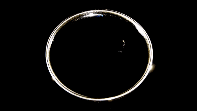 器施黑釉,外釉不及底足,见聚流釉现象,证明火候较高。内箱盖上金粉书“御茶碗曜变”,外箱盖黑漆书“御茶碗 曜变”。