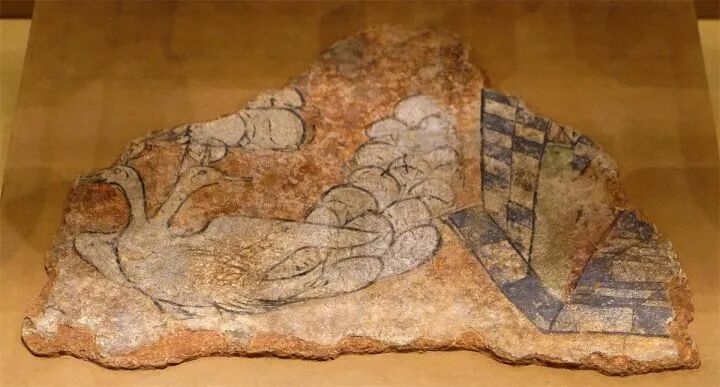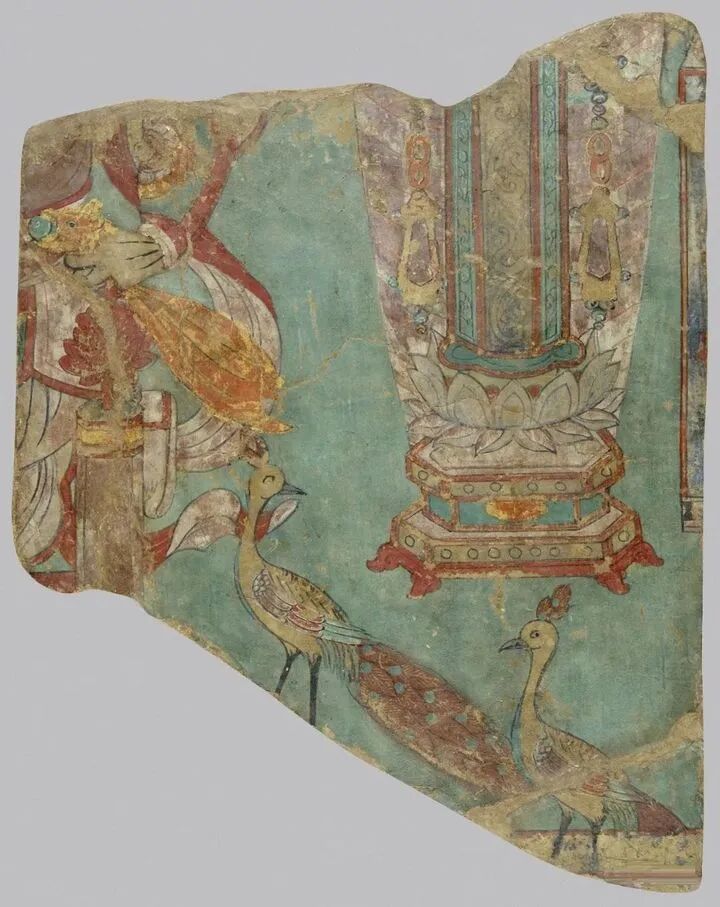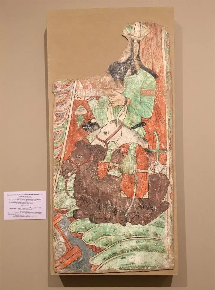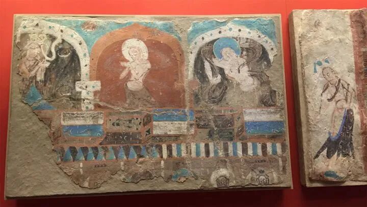 冬宫展出的新疆佛教壁画,主要是吐鲁番的柏孜克里克石窟和库车的克孜尔石窟千佛洞的壁画。
