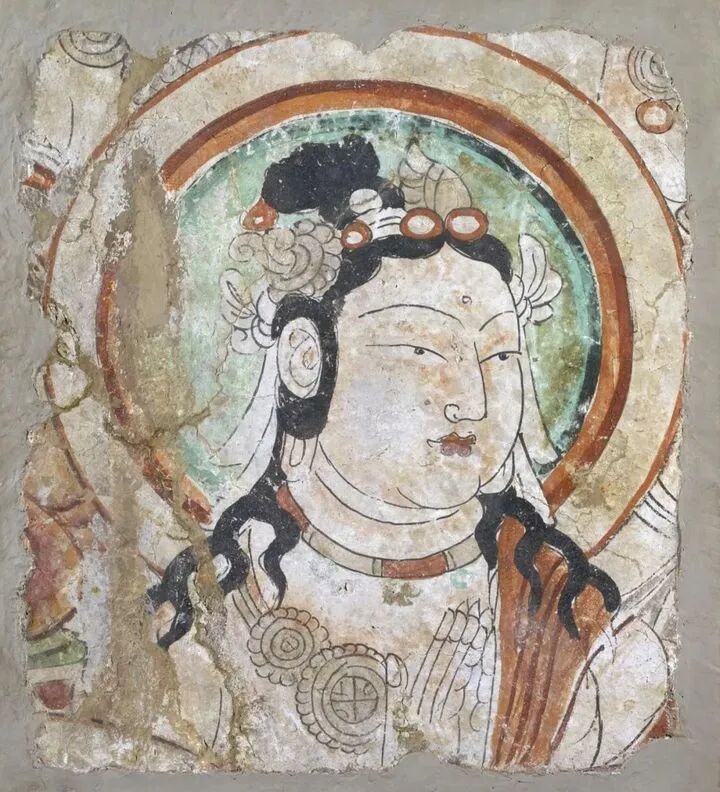 中国文物2-6:左边是敦煌壁画残件,右边是菩萨头像