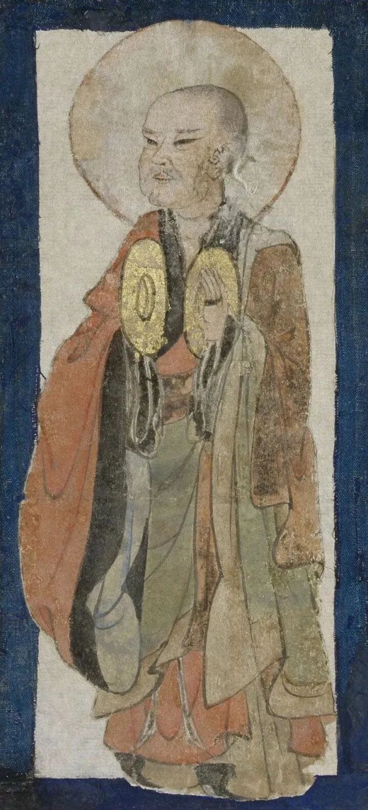 中国文物6:敦煌石窟出土的《宝胜如来像(行脚僧、云游僧)》,五代(10世纪),纸本彩绘,51.8×29.8cm