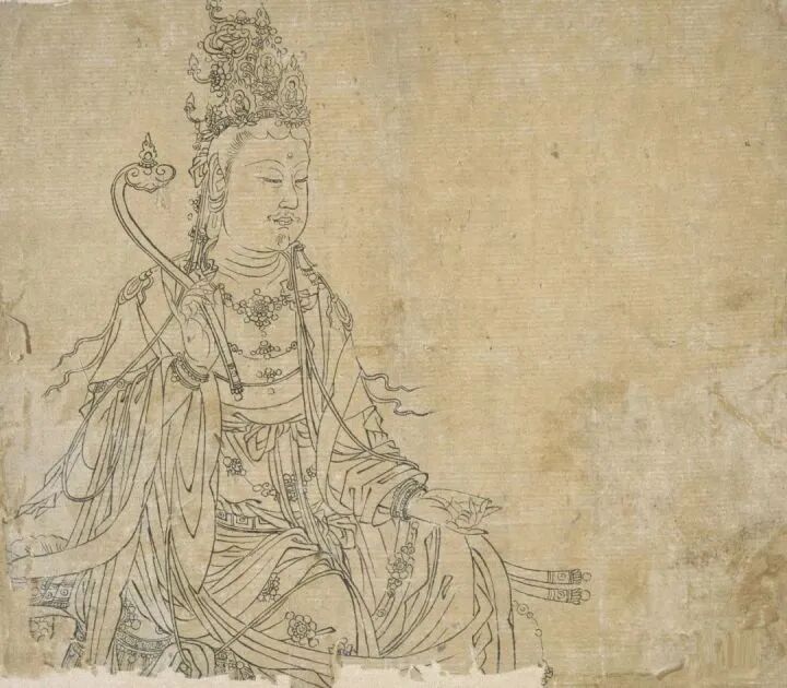 中国文物6:绘画15:菩萨白描图。简洁流畅的兰叶描,天衣飞扬