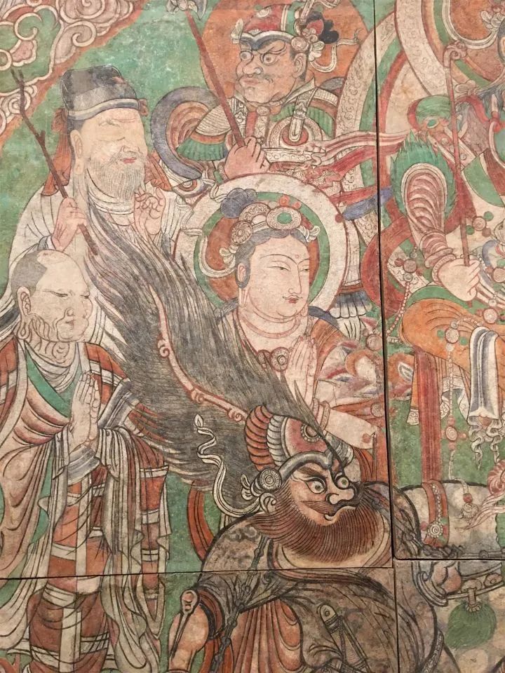 中国文物4:西域壁画1《文殊菩萨出行图》局部5:青狮后的随行菩萨、神将与僧俗弟子