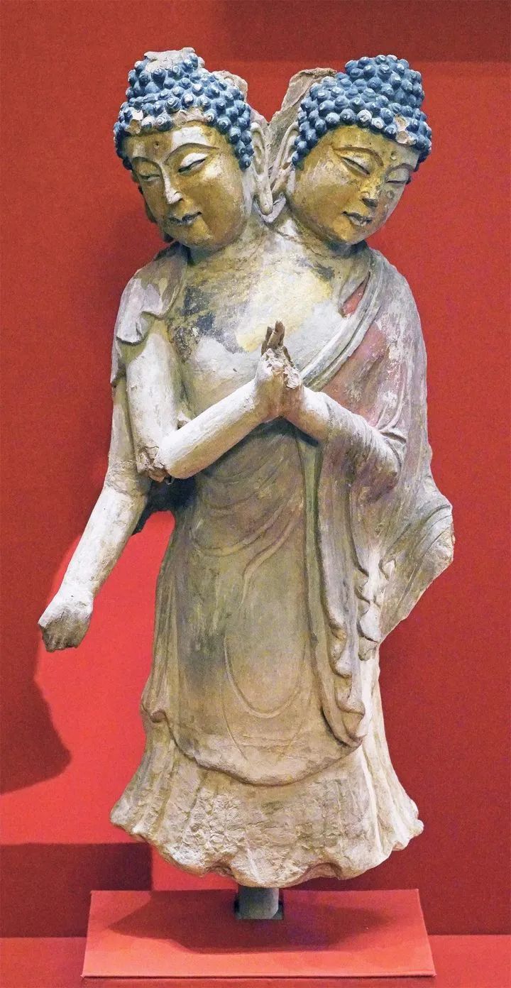 中国文物2-3:双头佛,1227年-14世纪末,西夏,内蒙古黑水城遗址出土,粘土彩塑,高62cm