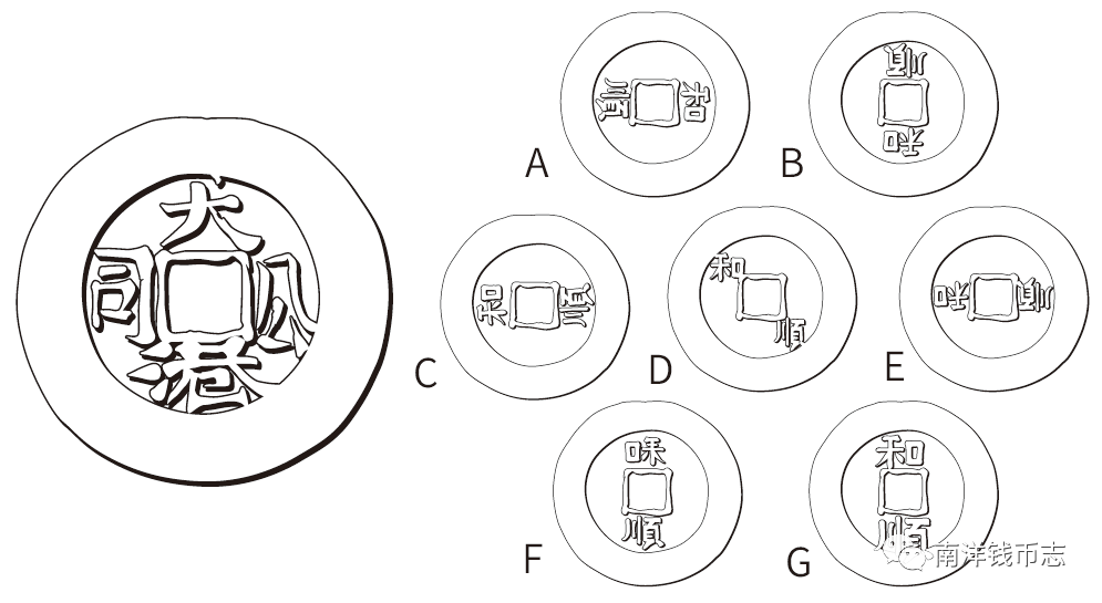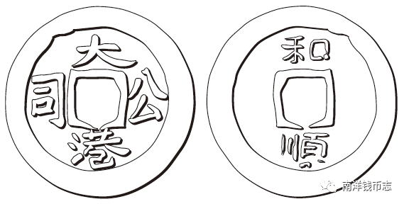 小型的大港公司锡币存世量可能较少,发现不多。根据手上现有的观察,其书写字体大同小异没有太大的变化,其“順”字也有简写的或缺少笔划等。