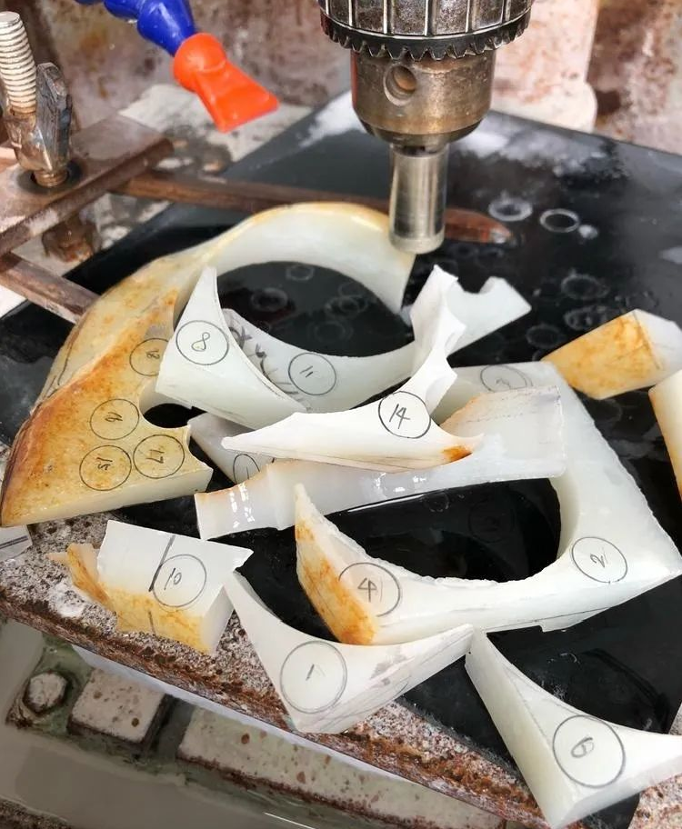 手镯边角料因为大且带有弧度,所以在创作上会有很大的发挥余地。