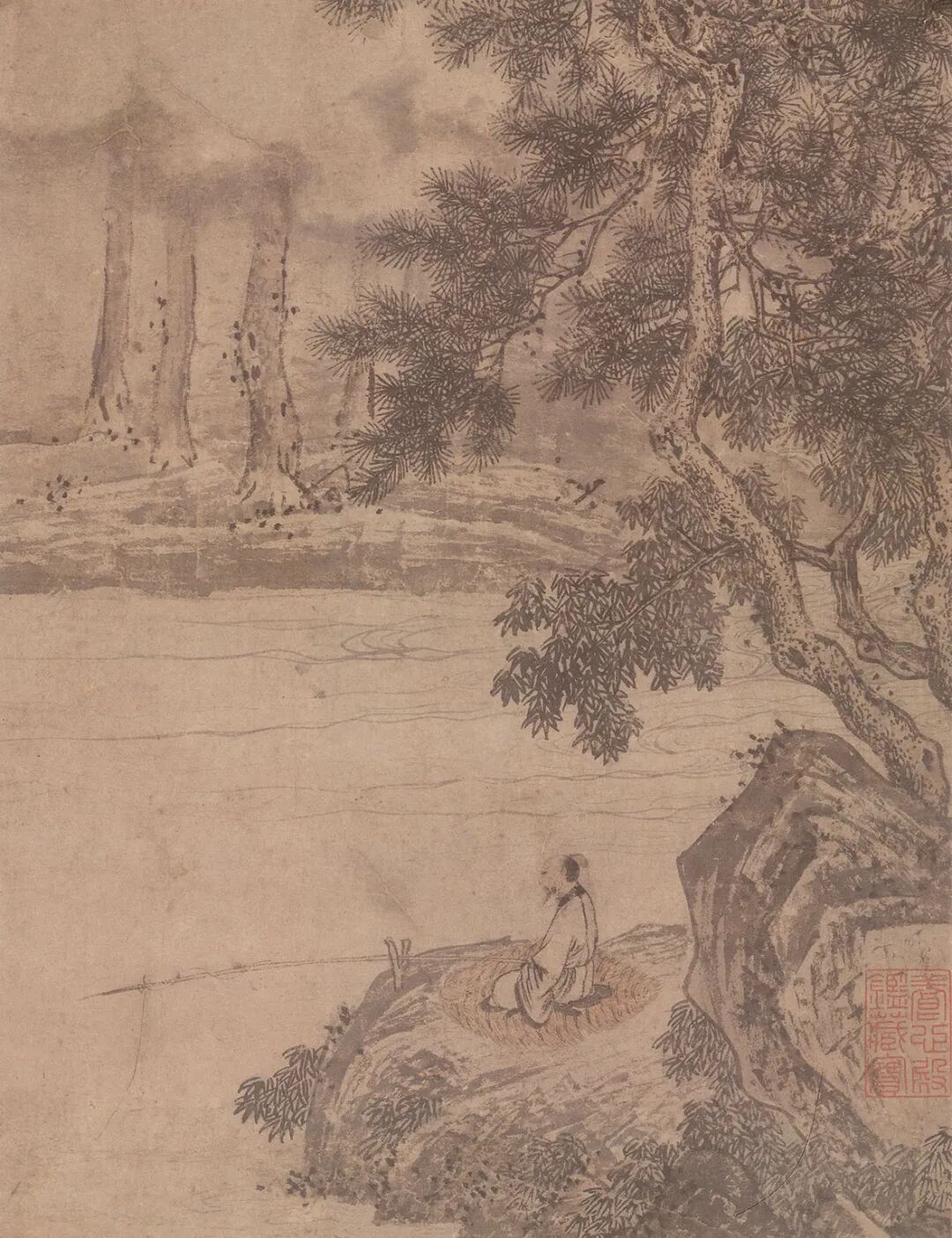 ▲唐寅 松溪独钓图(局部)