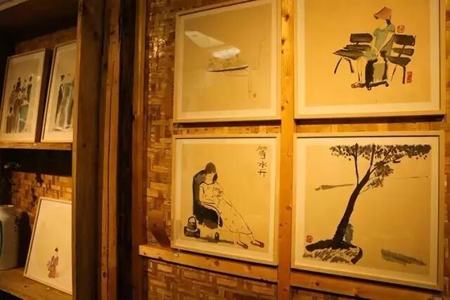 竹帘上的水墨画透露出