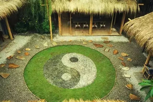 用石子铺成一幅太极图。