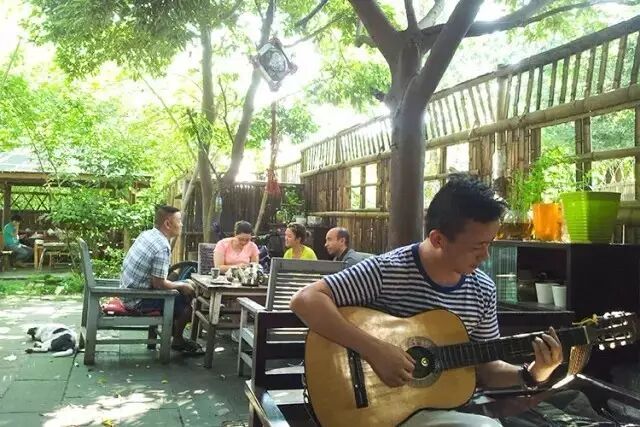在庭院中随性弹唱,