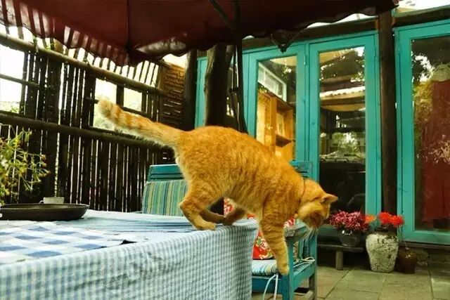 三姑的爱猫喜欢在院中追蜂扑蝶。