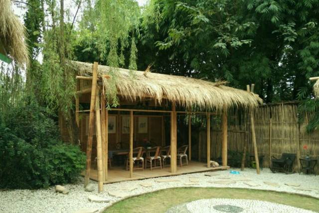 她就搭了几个茅草屋。