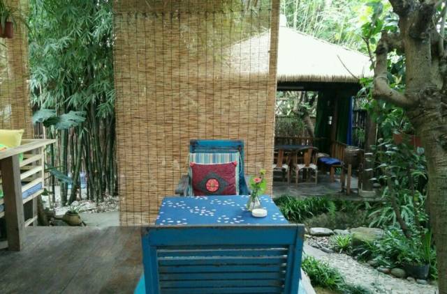 民宿被荷塘和树林紧紧围绕,