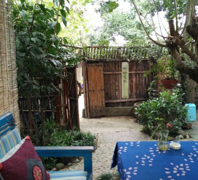 篱笆围绕的竹门挂着自己刻制的木招牌,
