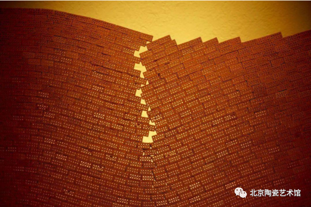 A:一种材料的“艺术”品质不是通过其实施的复杂性、纯度,甚至是它的抵抗力来衡量的……而是通过其能否引发观众共鸣来衡量的,而艺术家则热衷于通过创作去激发共鸣。这种关系是一种情感、感觉的问题,艺术家的职责之一当然是“揭示是什么”,也就是说,让别人通过他们的作品感知到他们自己能够看到的是什么。辨别和感受,这超出了作品的明确信息。非洲陶器、南美洲和北美洲的陶器、宜兴的名茶壶、伊朗的枝形吊灯等等都是特定的文化产品,与我选择创作用的低温砖头相比它们都需要很强的技术性,而我想说砖也代表了特定的底蕴和文化。我与砖的相遇可以追溯到 1984年至1986年在非洲卢旺达的两年半时间。在那里,我发现了陶瓷的新尺度:景观尺度。一块砖就是一只鸬鹚,单枪匹马几乎都没有什么作用,但是随着数量的递增,一堵墙的开始,从那里就开始开创了一个巨大的空间和领域的可能性,但绝不仅仅是以建筑的竣工而结束。