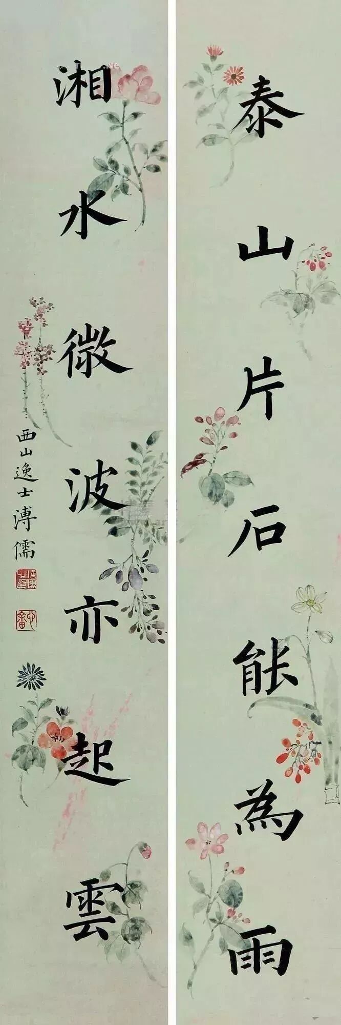 溥心畬早年的大楷主要取法颜柳欧三家,后于裴休《圭峰碑》用力颇多。而《圭峰碑》的笔法结构出自于柳欧。楷法道媚,极尽清尽方整之至。此碑略似柳公权,较柳书更为清健,用笔谨严,结构精密于欧阳询,惜紧过甚而少藴藉。溥儒喜欢此碑的清劲和飘洒,他并非步趋紧随,而是取法为己所用,最后将三家汇铸一炉,自成家法,从作品中也能看出其沉着强健,峻拔严整,灵秀活泼,寓险绝于平正,韵致高远,有清风道谷之气。