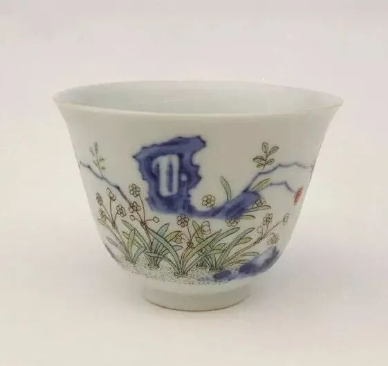 清 康熙青花海水梅花纹铃铛酒杯