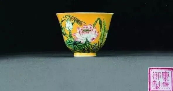 清 康熙黄地珐琅彩荷花纹酒杯