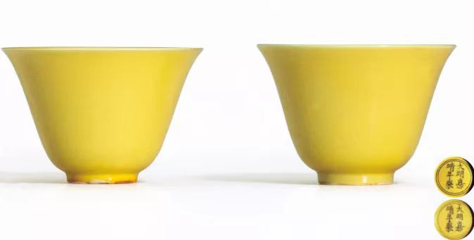 明嘉靖黄釉铃铛杯,杯口外撇,深腹,圈足,倒置似铃铛,由此而得名,是明清时期流行的杯式之一。既可用来喝酒,又可饮茶,可谓一器多用。