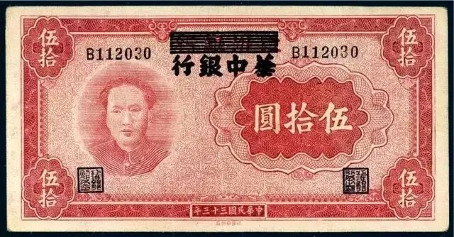▲1944年华中银行伍拾圆券