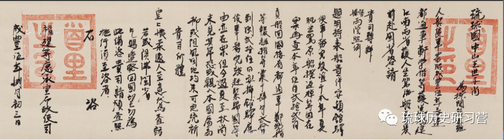 咸丰五年琉球王府咨福建布政司文。见于2021年永乐秋拍,成交价17万2500元。根据本人多年观风望气之力,此为赝品。