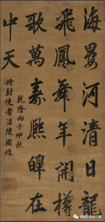 周煌册封琉球作诗。见于2021年日本上氏秋拍,成交价不详。根据本人多年观风望气之力,此为赝品。