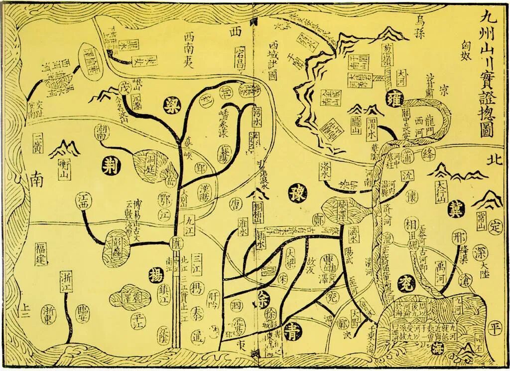 再就《禹贡》描述的天下九州划分的具体情况而言,这样的划分也正合乎魏惠王那个时期列国势力分布的大致情形。首先是位于两河之间的冀州,它是赵、魏、韩三国主要的地域,这当然合乎《禹贡》设计的逻辑。其次是河济之间的兖州,它实际包含了魏国新占领的一片靠近大梁的地域;此外也包含了卫国的地域,但卫当时不过是魏的附庸,《禹贡》作者将之安排在冀州之后,也是很自然的事情。接下来的青州位在东方,主要是齐的地域,没甚么可说的。齐国南面到淮水以北的地区称作徐州,大致就是泗水流域的一片地区,居住着鲁、宋等一干称作“泗上十二诸侯”的小国,当时也都是魏的势力范围。淮水以南的东部沿海地区称作扬州,是越国的领土,当时越国势力已不如前,但仍存在,不过在魏惠王去世后不久,它便灭于楚国了,这也从一个方面反映了《禹贡》的制作应在魏惠王时期。越国以西今两湖地区称作荆州,是楚国的地域。楚国北面、黄河以南的中原地区被列为豫州,这应是考虑到东周王朝的存在,要给它一个落脚的地方。实际上周附近还有部分韩国的土地。楚国西面的巴蜀地区称作梁州,其时尚有地方政权存在,并与魏国有着人员的往来,只是在魏惠王去世以后,蜀国才被秦国所灭,蜀地也才被纳入秦国的版图,其所以占得九州一席之地,也可以说明《禹贡》制作在魏惠王时期。最后是地处西方的雍州,属秦国。