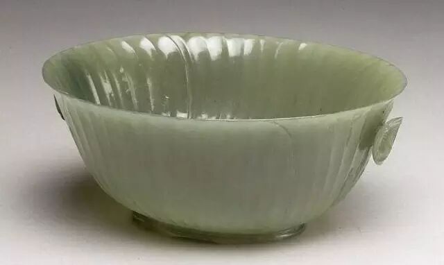 清 痕都斯坦碧玉菊瓣纹碗