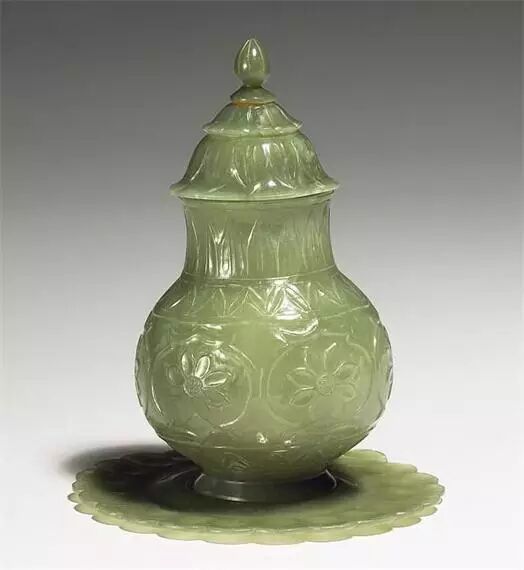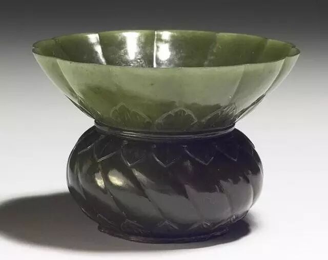 清乾隆 碧玉雕痕都斯坦式嵌宝石花式盏