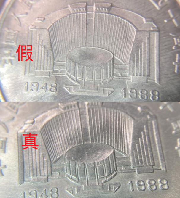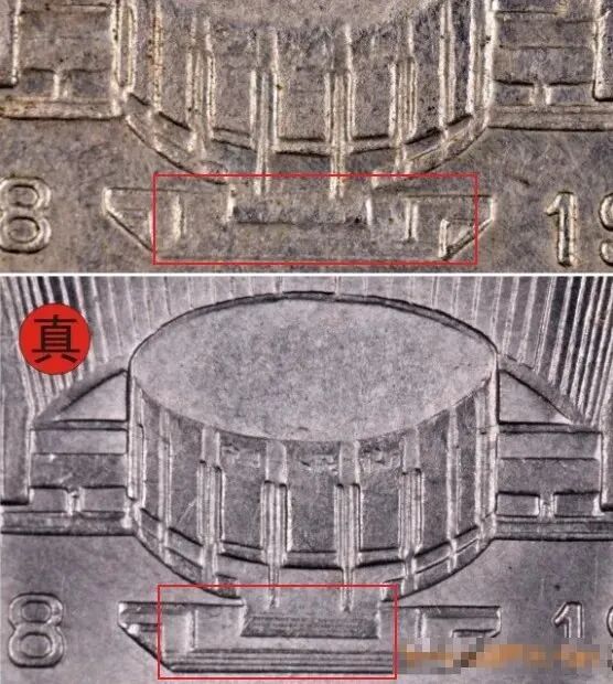 在80年代,我国的纪念币在冲模前对币胚的边缘做过滚边处理,齿的长度会短于币的厚度,这也是很重要的辨别建行币真伪的一个点。
