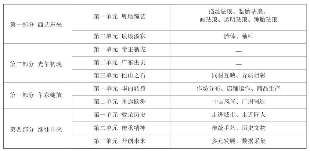 表一 “广珐琅展”大纲框架表