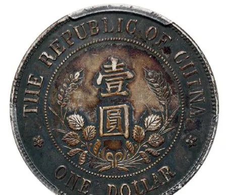 该币正面图案中央为黎元洪戴军帽像,珠圈外上环镌中文隶书体“中华民国”4字,下环镌中文隶书体“开国纪念币”5字,珠圈外左右两侧有梅花图案;背面图案中央是竖镌“壹圆”2字,珠圈外上环镌英文“THEREPUBLICOFCHINA”(中华民国),下环镌英文“ONEDOLLAR”(壹元)。两侧偏下有五角星。此币设计美观,铸工精良,传世稀少,殊为珍贵。