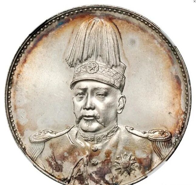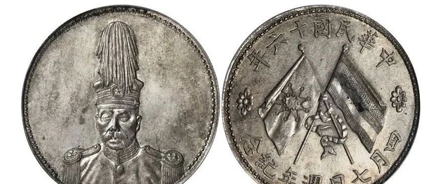袁世凯曾于1915年12月接受帝王称号,改国号“中华帝国”,改1916年为“洪宪元年”,并拟于1916年元旦加冕登基,此银币应为其加冕登基的纪念币。