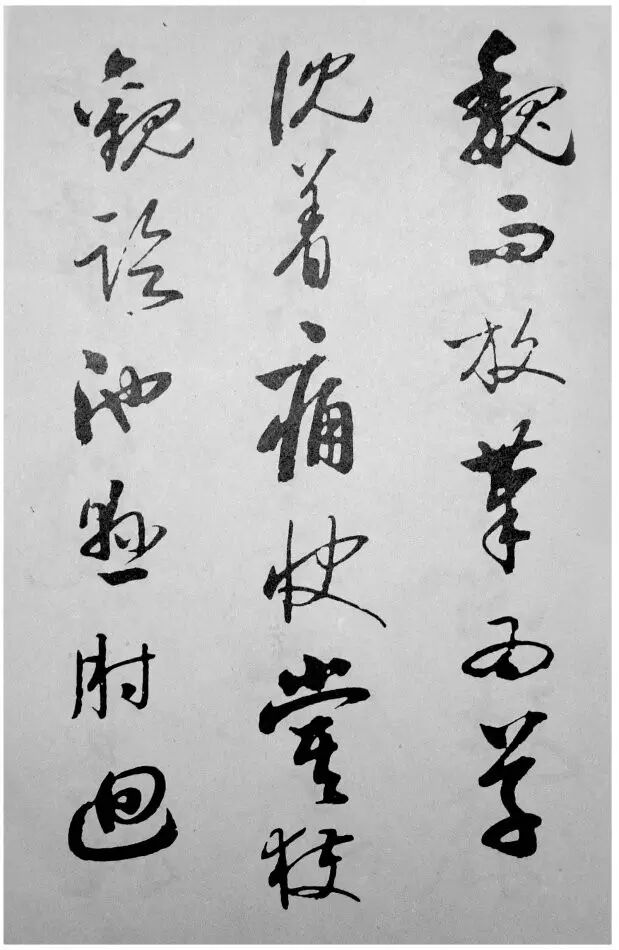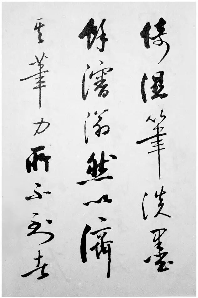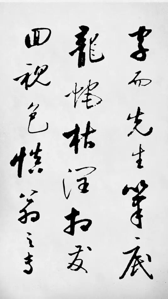 这个“痕”的“形象”是自然的、有涩势的、有质感的,又总是垂直向下的。这是一般书法家无法到达的书法的最高境界。