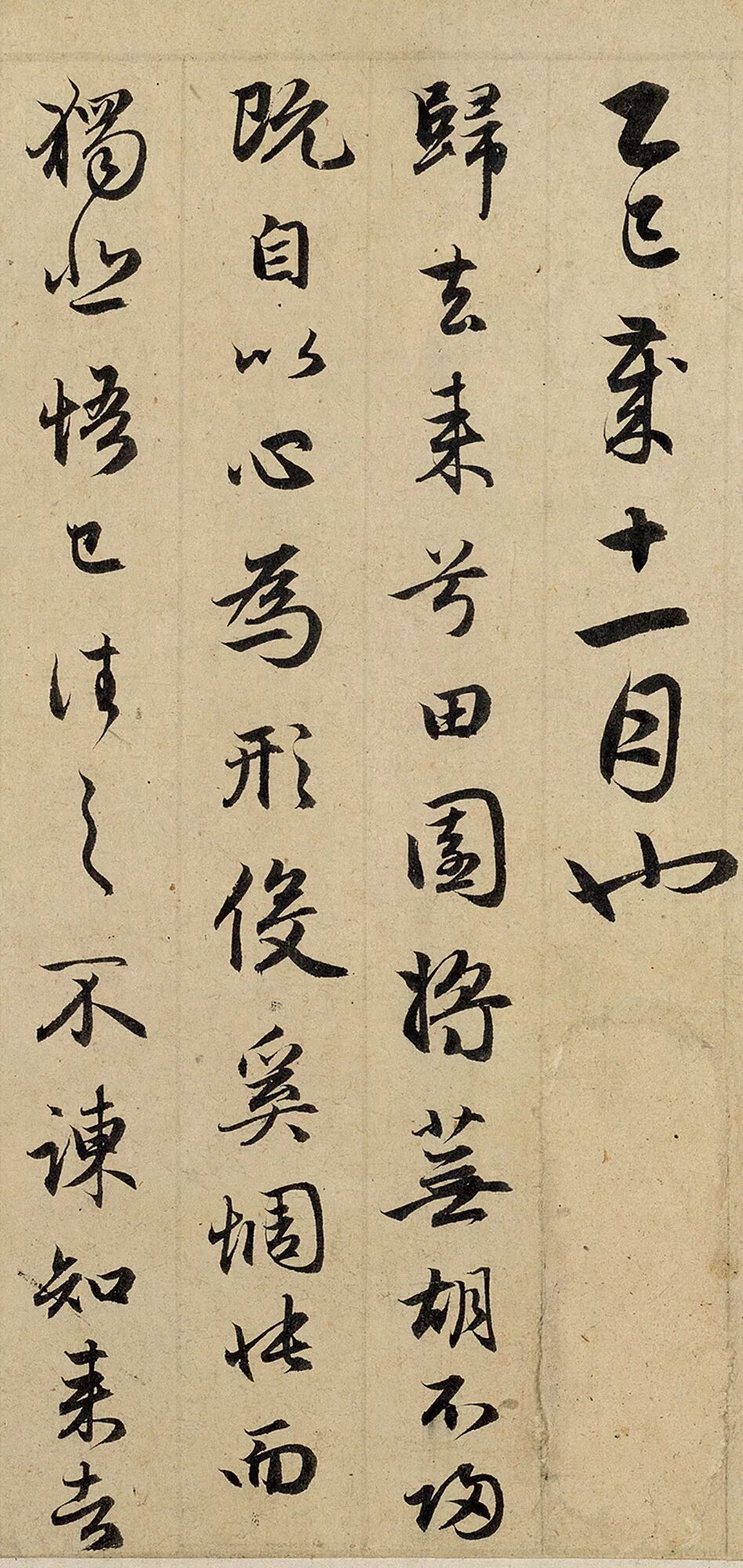 下面,请大家欣赏一下赵孟頫的经典名作《归去来并序》,此帖现藏于上海博物馆。赵孟頫书此作速度较快,虽以行书为主,间以草法,字字遒逸神韵俱足,笔精墨妙,神气充足。展现出赵孟頫极其熟练的书写技巧与笔法。