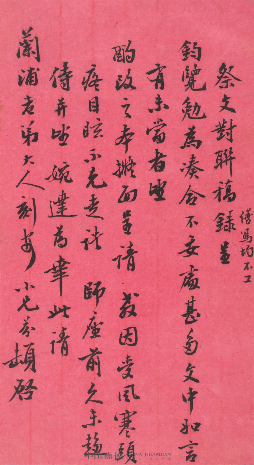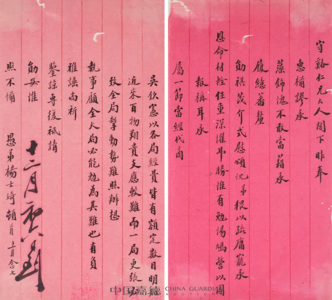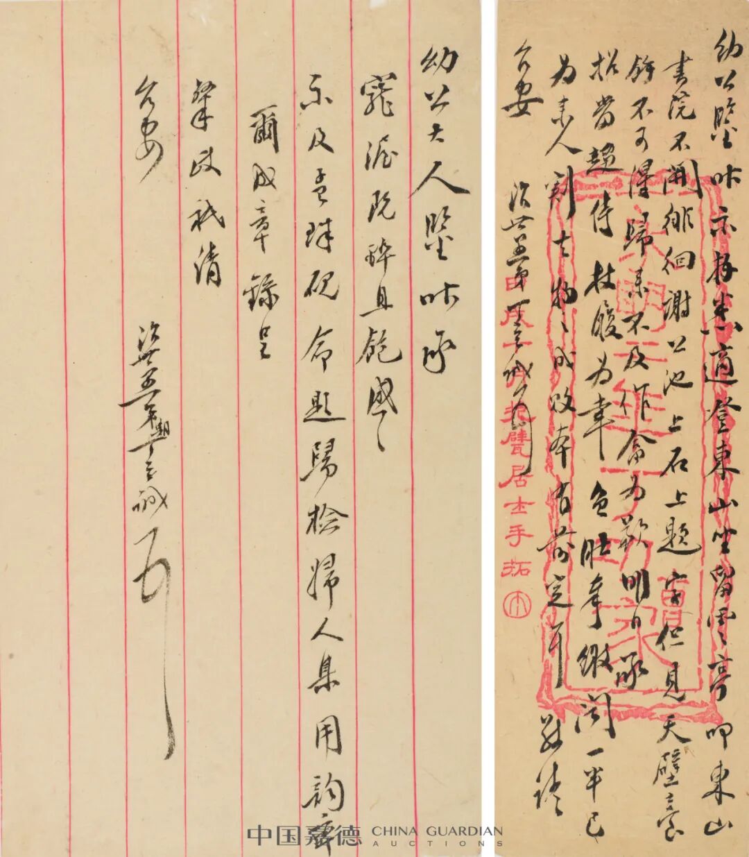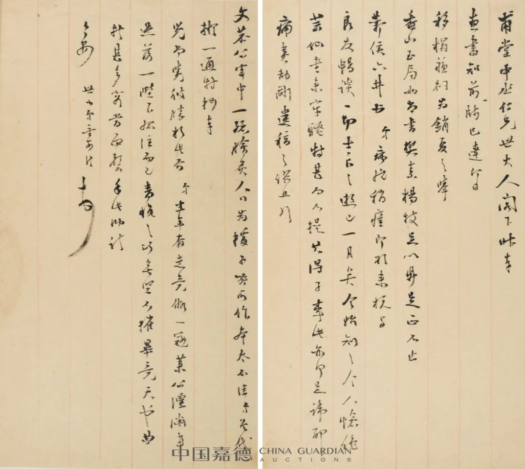丁立诚(1850-1912),字修甫,号慕倩,晚号辛老、莘老,浙江钱塘(今属杭州)人。清末藏书家、目录学家。清光绪元年(1875)举人,官内阁中书。以藏书闻海内,所收西泠八家刻印尤富,著有《小槐簃文存》《小槐簃吟稿》《永嘉金石百咏》等。另有许应骙、俞廉三、袁树勋、张人骏、叶祖珪、聂缉椝、杨士琦致同一上款人“守溪”书札一组7件,诸位多为晚清一方封疆大吏或中枢智囊。其中叶祖珪信中提及军火船只过关验收事宜;杨士琦信中谈及物价翔贵,各局经费紧张;其余几通均为拜贺之词。张人骏(1847-1927),字健庵、千里,号安圃,晚号湛存居士。直隶(今河北唐山)人。张佩纶侄,清末政治家,历官同治、光绪、宣统三朝。同治七年(1868)进士,授翰林院编修。后历任山东布政使、漕运总督、山西巡抚、河南巡抚、两广总督、两江总督等,在任时守卫了西沙群岛的主权。谥文贞。杨士琦(1862-1918),字杏城。安徽泗州(今江苏盱眙)人。清光绪八年(1882)举人,总办关内外铁路事宜,曾任邮传部长,辛亥革命后任熊希龄内阁交通总长。出身大官僚家庭,为李鸿章、袁世凯重要幕僚,素称“智囊”。还可见清末民初,出身行伍之高级将官、民主革命者徐绍桢、游凤池、杨子萱、商德全、穆葆善、贾德耀、焦曾宪(焦菊隐父亲)、徐克复、晏道刚、何文华等致同一上款“易谙”信札4件。16.5×25.8 cm、19×28 cm、19.3×26.5 cm徐绍桢(1861-1936),字固卿。广东番禺人,祖籍浙江杭州。明朝开国元勋徐达第14世孙。中国近代民主革命家,被孙中山誉为“中华民国开国元勋”,陆军中将,加上将衔。藏书甚富,在南京任职时曾筑藏书楼,至辛亥革命时已储书20余万册,惜被张勋焚毁。后再筑“学寿堂”藏之,晚年病居上海,致力著述,颇精版本及历算之学,著有《三国志质疑》《六书辩》《勾股通义》等。游凤池(1890-1960),字沛生。贵州贵阳人。民国间曾任中央军校、陆军大学教官,中将军衔。1949年在重庆参加起义,后任贵州省政协委员。亦有洋务运动代表沈桂芬、台北规划师王凯泰、金石名家潘祖荫、同光体浙派代表袁昶、日本权威汉学家内藤湖南、藏书家傅增湘、苍虬居士陈曾寿、浓墨宰相刘墉、文治总统徐世昌等学人名家书札墨迹,于金石碑版、经史文辞等领域各放异彩。沈桂芬(1818-1881),字经笙、小山。顺天宛平(今北京市)人,祖籍江苏吴江(今属苏州)。晚清洋务运动主要负责人之一。道光二十七年(1847)进士,历官内阁学士兼礼部侍郎、山西巡抚、军机大臣兼总理各国事务衙门大臣、兵部尚书,后加太子少保。逝后太子太傅,谥号文定。著有《粤轺随笔》《成均课士录》。王凯泰(1823-1875),初名敦敏,字幼徇、幼轩、补帆,号补园主人。江苏宝应人。道光三十年(1850)进士,后入李鸿章幕。历任浙江督粮道、浙江按察使、广东布政使、福建巡抚。同治十三年(1874)因沈葆桢奏请移巡驻台以协理外交之故,于光绪元年(1875)渡台处理台湾事务。逝后赠太子少保,谥“文勤”。著有《致用堂志略》《致用堂捐藏书目》《岭南鸿雪集》《台湾杂咏》等。薛时雨(1818-1885),字慰农、澍生,号桑根老人。安徽全椒人。清咸丰三年(1853)进士。太平军起,参李鸿章军幕。官至杭州知府,兼督粮道,代行布政、按察两司事。为台湾第一巡抚刘铭传亲家。晚清著名词家之一,作品有《藤香馆诗删》《词删》等。潘祖荫(1830-1890),字在钟,小号伯寅,亦号少棠、郑盦。江苏吴县(今苏州)人。清咸丰二年(1852)进士,官至工部尚书。通经史,精楷法,收藏金石甚富,是清代“吉金”鉴藏的关键人物之一。著有《攀古楼彝器款识》,辑有《滂喜斋丛书》《功顺堂丛书》等。12.7×22.7 cm、12.5×22.5 cm袁昶(1846-1900),原名振蟾,字爽秋、重黎,号浙西村人。浙江桐庐人。清光绪二年(1876)进士,历官户部主事、总理衙门章京、江宁布政使、太常寺卿。因直谏反对用义和团排外而被清廷处死,同时赴刑的还有许景澄、徐用仪等四人,史称“庚子五大臣”。《辛丑条约》签订后,清廷为其平反,谥“忠节”。同光体浙派诗人代表,著有《渐西村人日记》《安般簃诗续钞》等。张謇(1853-1926),字季直,号啬庵。江苏南通人。中国近代实业家、政治家、教育家、书法家,“江苏五才子”之一。清光绪二十年(1894)进士,主张“实业救国”,是中国棉纺织领域早期的开拓者。精擅书法,学颜而掺以欧阳率更。内藤湖南(1866-1934),本名虎次郎,字炳卿,号湖南。日本秋田人。日本中国学京都学派创始人之一,与严复、罗振玉、刘鹗、王国维、郭沫若、梁漱溟、张元济等中国朝野硕学之士等往从过密。精于中国古籍、书画等鉴赏,在中国史学史、美术史、目录学、敦煌学、满蒙史地等领域,也都卓有建树。著有《中国史学史》《近世文学史论》《支那美术史》等。傅增湘(1872-1949),字叔和,后改字沅叔,号润元,自属藏园居士、双鉴楼主人。四川江安人。清光绪二十四年(1898)进士,曾任翰林院编修、直隶提学使,创办北洋女子师范学堂及京师女子师范学堂,后任北洋政府教育总长、故宫博物院图书馆馆长。工书,善文,精鉴赏,富收藏,以藏书为大宗,世所闻名。遍交当时藏书大家,如李盛铎、缪荃孙、袁克文、陶湘、张元济、刘承干、叶德辉等人,其搜书之勤、藏书之富、版本之精,为近代诸藏书家之首。陈曾寿(1878-1949),字仁先,号耐寂、复志、焦庵,家藏元代吴镇所画《苍虬图》,因以名阁,自称苍