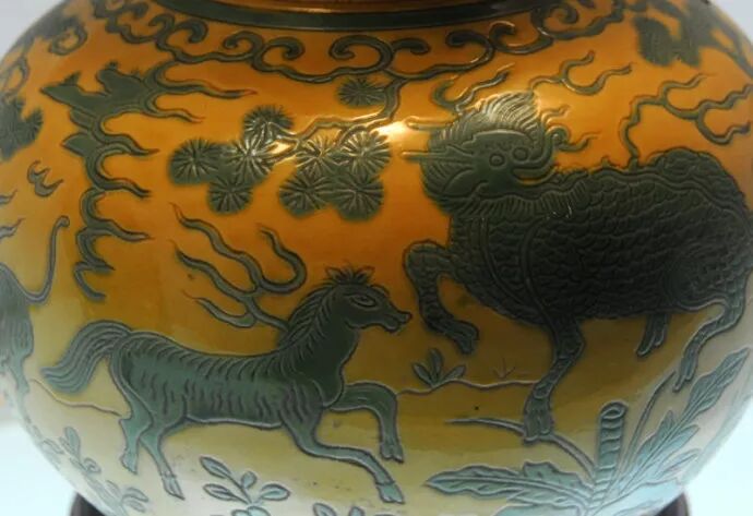 清康熙黄地绿彩瑞兽纹葫芦瓶