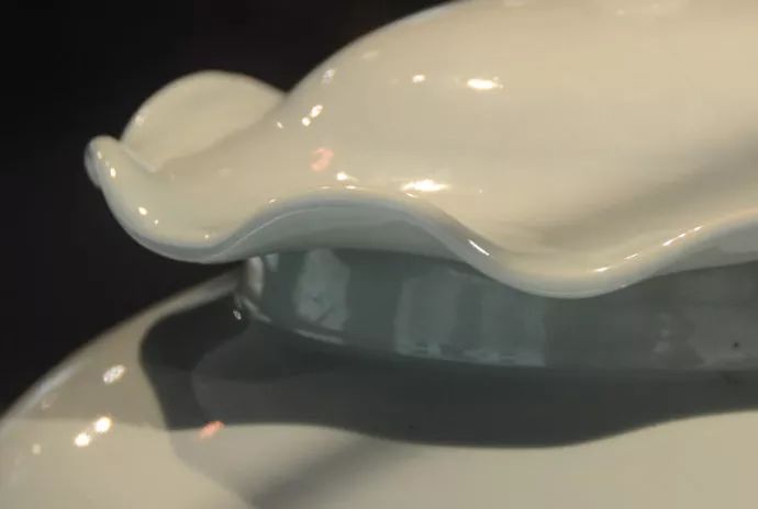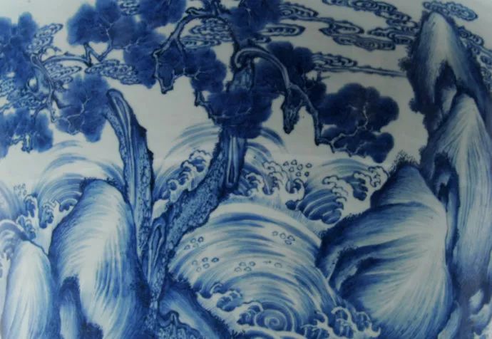 它与一般白地蓝花的青花器不同,是蓝地白花,即以青花为地,白釉表现海浪。浓重的青花发色、青料略有蕴散的缺陷美、仿青铜鼎的造型与满器似要外溢的海浪相融于一体,使青花炉具有憾人心魄的艺术魅力,令观者为之动容。完整的宣德青花寿山福海纹炉仅存一、二件,足以见其珍贵。