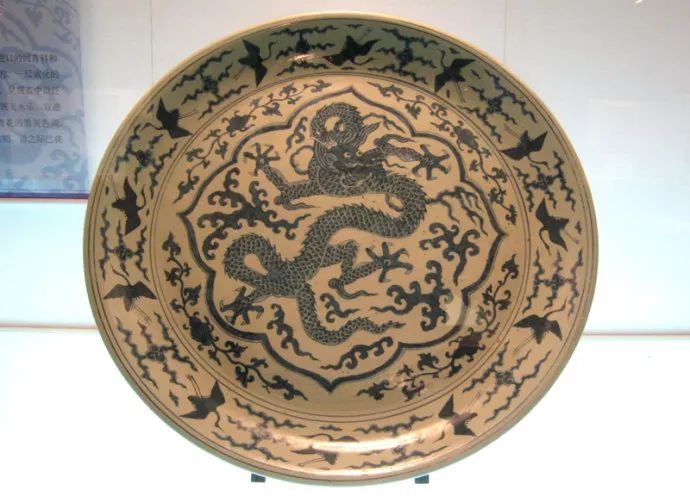 古代常以“鹤”作为吉祥长寿的题裁,是因为传说鹤可以百年不死,升天成仙,故为人所向往。它正好迎合嘉靖皇帝希望延年益寿、祈求长生的愿望。云龙纹盘的五爪龙纹饰,显示着王权的至尊!