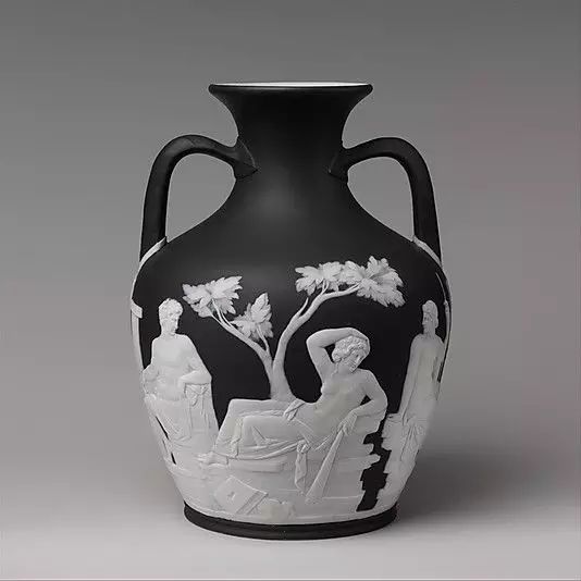 韦奇伍德还聘用当时著名的雕刻家约翰·弗拉克斯曼,并将他所做的各种雕像和浮雕花样翻制到这种陶器上。这些白色装饰物贴附在陶器的胎体上,与胎体的颜色形成强烈对比,立体浮雕效果令人惊叹,每件作品都洋溢着浪漫与尊贵。