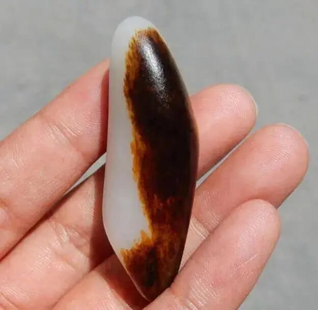 老熟的料子往往很细,高密高油,将“熟”玉握于手中摩挲感觉,如婴儿肌肤般的凝脂之感便会在此刻出现,顺滑流畅,毫不滞手。