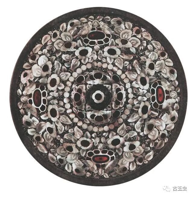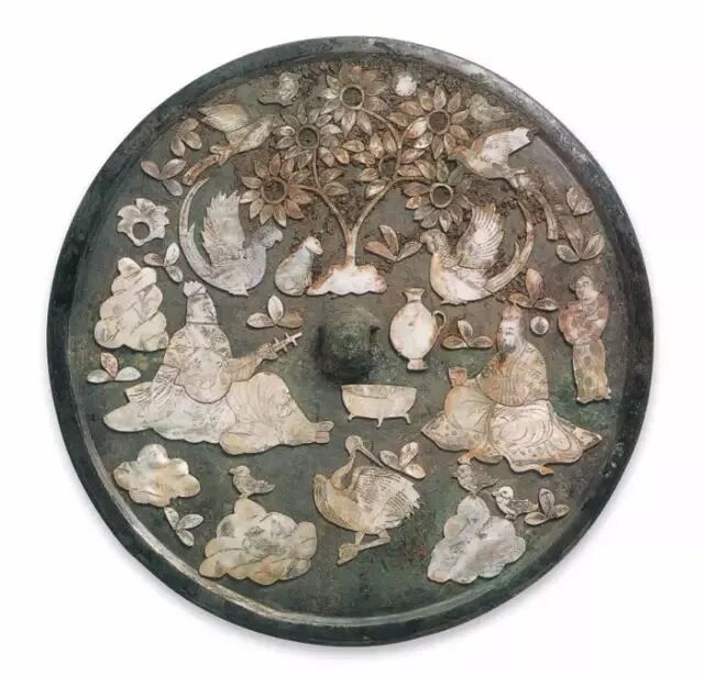洛阳涧西矿山机械厂唐兴元元年(784年)陈曦墓镶嵌螺钿人物花鸟镜![]()