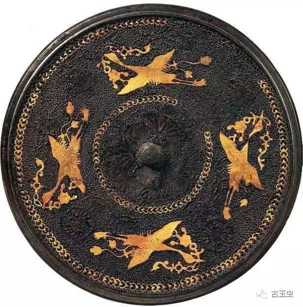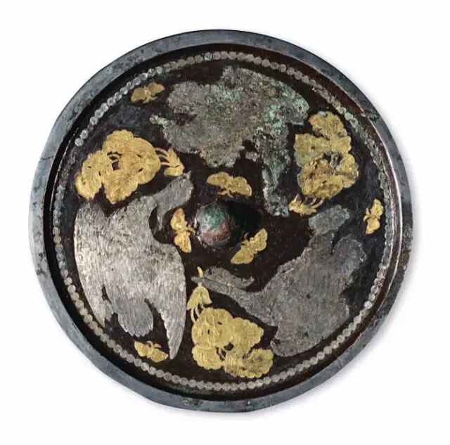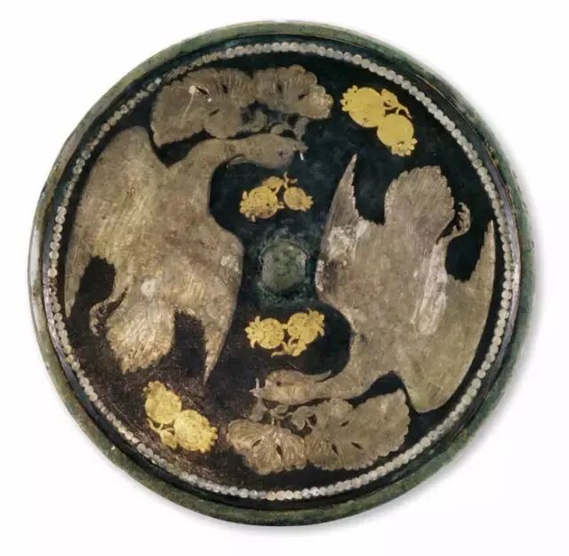 偃师杏园唐大历十年(775年)王嫮墓金银平脱三雁镜![]()