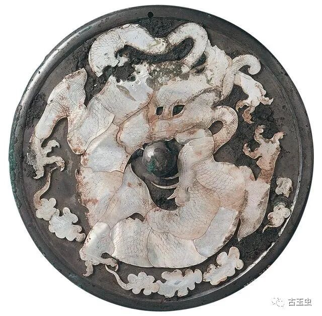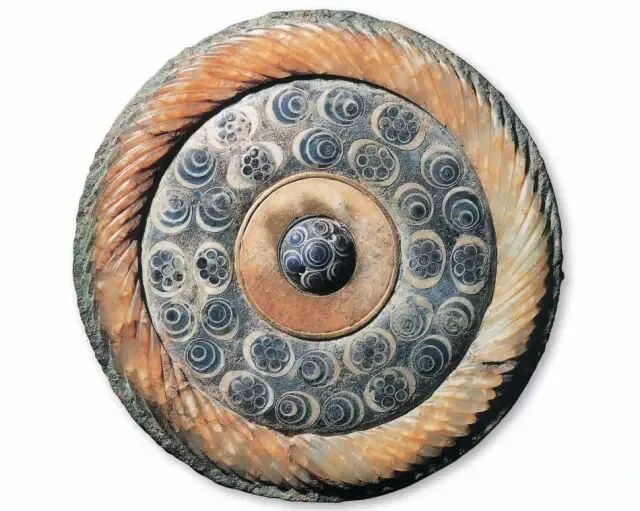 传洛阳金村战国大墓出土嵌玉琉璃镜 特色:制作工艺罕见汉镜,包括蟠螭纹镜、连弧纹铭文镜、草叶纹镜、重圈铭文镜、四乳禽兽镜、规矩镜、变形四叶纹镜神兽镜、画像镜、夔凤、龙虎纹镜等;![]()