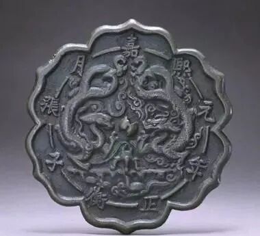 金代铜镜元、明、清时代的铜镜,由于铸镜业趋于衰落,除形制变化较多,有柄铜镜多见,图案、纹饰绝少创新,纹饰简略粗狂。![]()