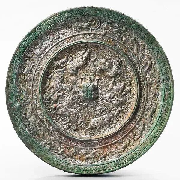海兽葡萄纹铜镜天圆在中国古代是丰满、完整、吉祥、美好、富足的象征,在汉语中团圆、圆满是祥和的词语。因此,圆形镜一直是铜镜的重要形式。![]()