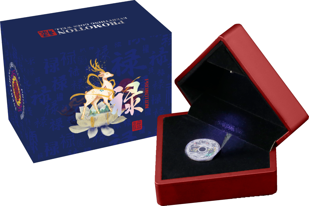 币面图案为两只鹿,鹿与禄谐音,向来就有升官和吉祥长寿之意,还有“禄鹿亨通”这一说法,就代表着高升的美好祝愿。