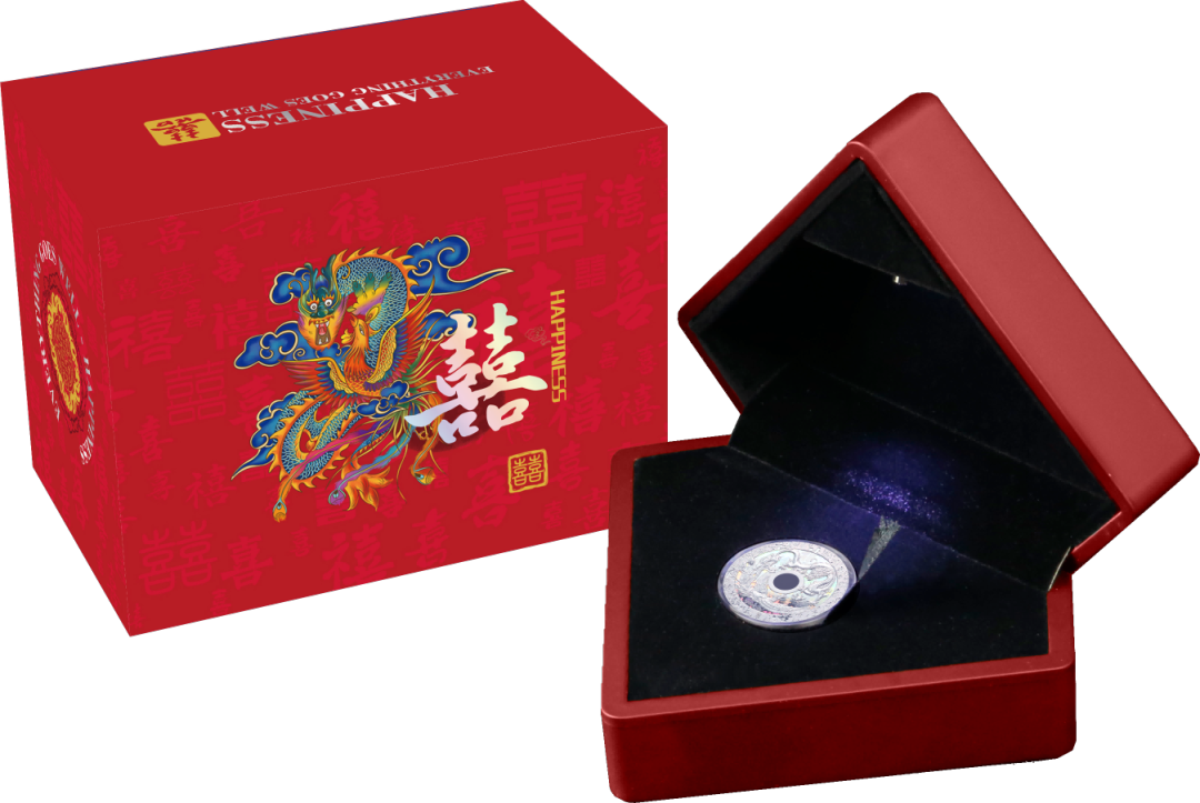 这枚币的主题就为龙凤呈祥,寓意阴阳和谐、婚恋美满!