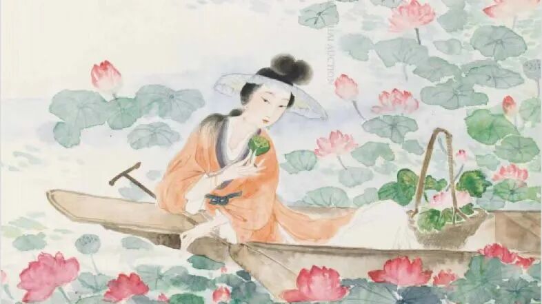 玲珑菡萏,香远十里—共赏梅景书屋吴家合璧之《荷塘采莲图》丨中贸圣佳2022上海拍卖