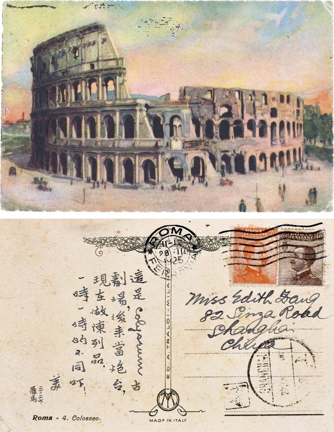 1925年三月二十七日,邵洵美来到罗马,参观了罗马大教堂,又游览了古剧场的残壁断垣,在寄自罗的一张彩色明信片上写道“这是Colysrum古剧场,后来当炮台,现在做陈列品,一时一时的不同吓”。