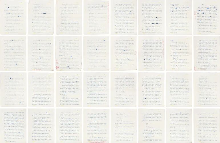 此手稿共79页,是民国著名诗人邵洵美从1957年8月开始翻译泰戈尔《四章书》,完稿于1958年被捕之前。文稿中有数页译者亲自以红钢笔作注。此稿正文完整,品像完好,惶惶79页手迹,在拍买中少见,是当代文学重要资料。